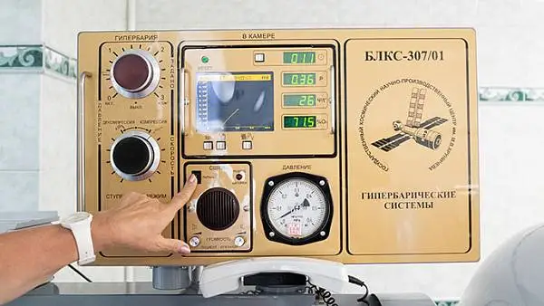 Для проведения гипербарической оксигенации клиника «Медицина» использует современную высокотехнологичную установку БЛКС-307-«Хруничев», разработанную и изготовленную на предприятии, входящем в состав знаменитого авиакосмического концерна. Она принадлежит к третьему поколению барокамер и специально разработана в лечебно-профилактических целях. Оборудование обладает высокой надежностью, которая обеспечивается применением космических технологий на всех этапах проектирования и производства изделия.