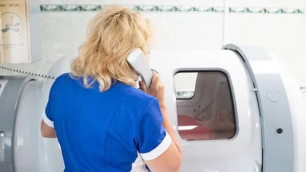 Перед первым сеансом физиотерапевт проводит беседу с пациентом, рассказывает, как будет проходить лечение и какие ощущения могут возникнуть при росте давления в камере.