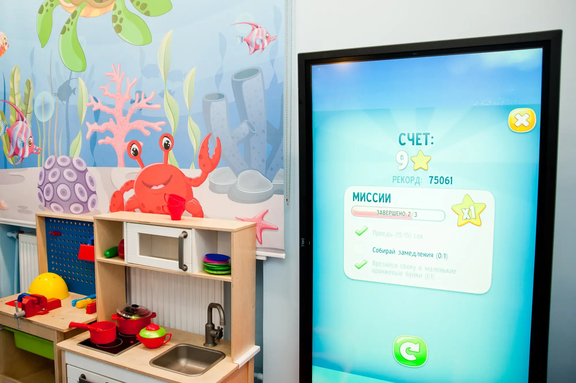 - У нас ребенку будет интересно и не страшно! В отделении есть игровые модули, сенсорные мониторы с интерактивной программой для самых маленьких, развивающие книжки с заданиями. У нас ребенку будет интересно и не страшно.