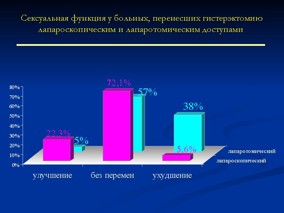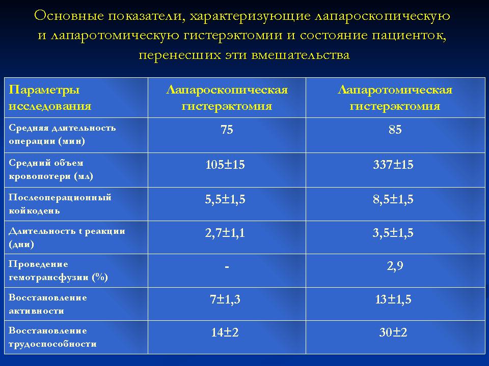 Из доклада доктора медицинских наук М.М. Высоцкого "Лапароскопическая гистерэктомия и опухоли яичников: опыт, ограничения, эволюция подходов"