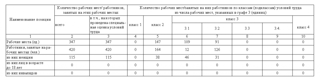 Сводная ведомость результатов проведения специальной оценки условий труда