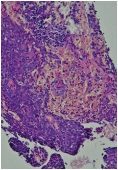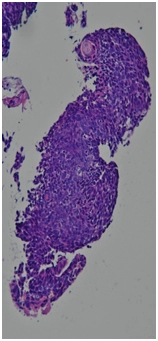 Гистологическое заключение. Высокодифференцированная плоскоклеточная карцинома с ороговением (G1) на всю толщину фрагментов.