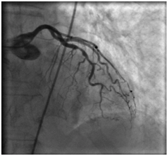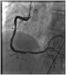 Огибающая коронарная артерия без признаков стенозирующего атеросклероза.