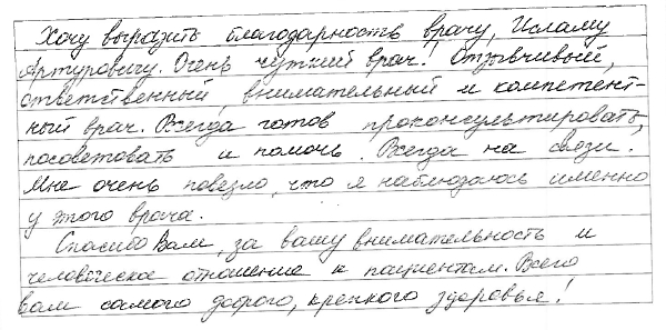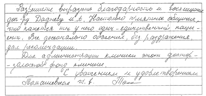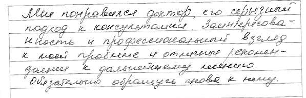 PS: Обращение к Руководству-цените, благодарите, мотивируйте, чтобы такие врачи служили людям на благо их здоровья! Низкий поклон!