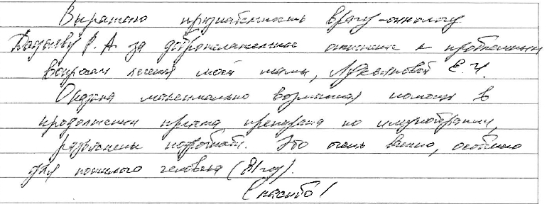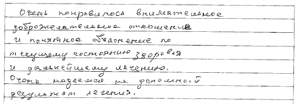 Огромное спасибо за уверенность в завтрашнем дне, что для нас, таких пациентов очень важно