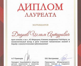 От всей души выражаю благодарность за профессионализм, сердечную теплоту, за бескорыстный благородный труд врачу-хирургу-онкологу Дадыеву Исламу Артуровичу. Ислам Артурович – внимательный, обходительный, добрый и прекрасный доктор. Помог в самую трудную минуту. Уже больше года Ислам Артурович назначает не только лечение, но и даёт подробные консультации по вопросу здоровья, и как не запускать болезнь, а продолжать вести активную жизнь. Дальнейших успехов в Вашем деле! С уважением и благодарностью от имени Вашей пациентки - Мамадаевой Х.Т."