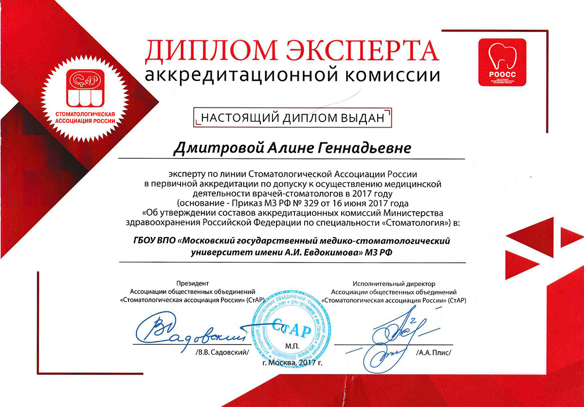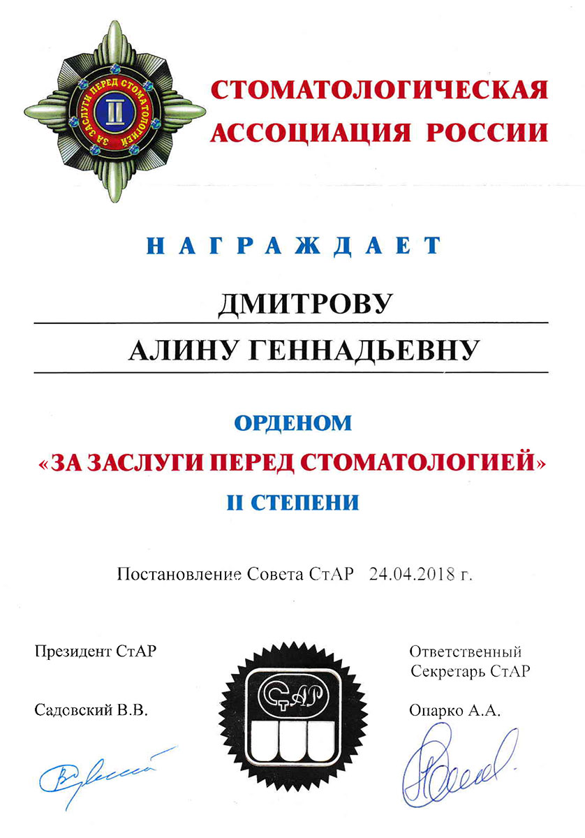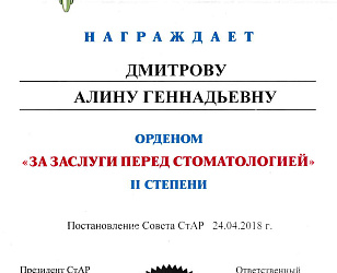 - Член Международной ассоциации детской стоматологии IAPD (Int Assoc Pediatric Dentistry).