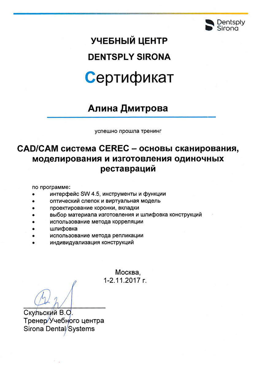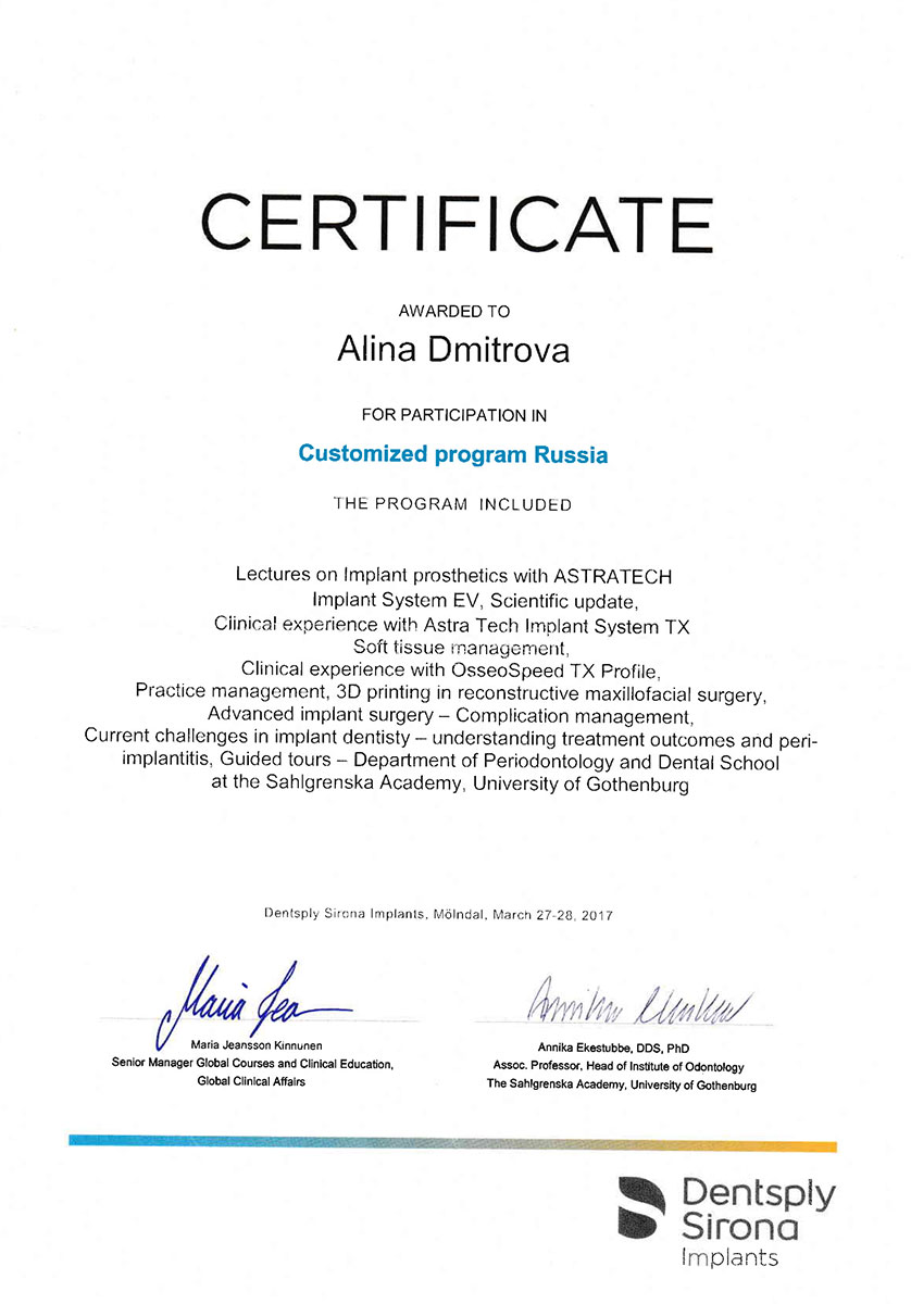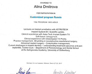 - 2017 г. - «Implant Prosthetics with ASTRATech», University of Gothenburg.