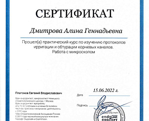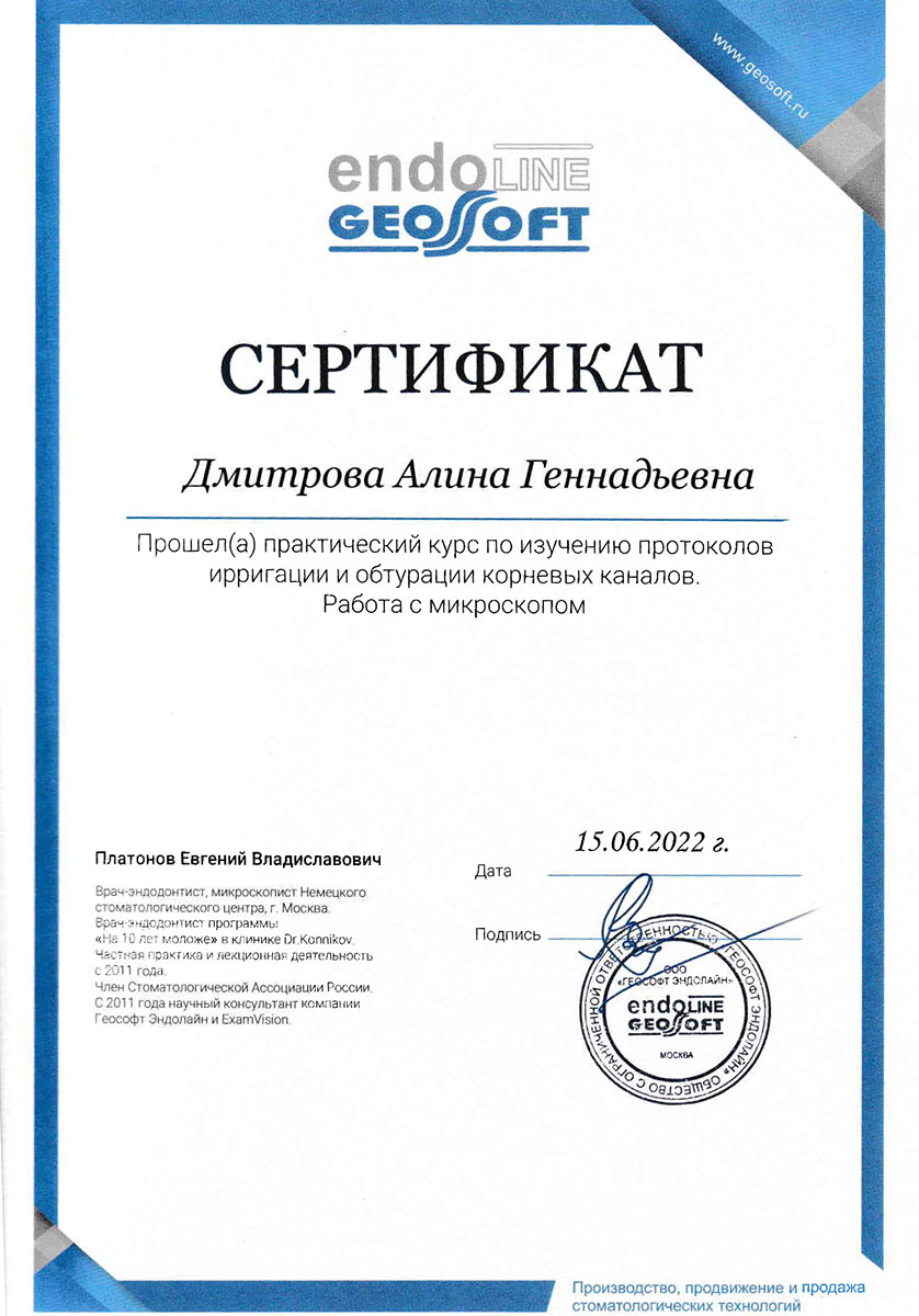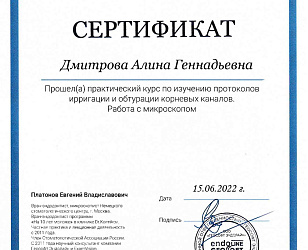 - 2023 г. - «Академия современной детской стоматологии», г. Москва.