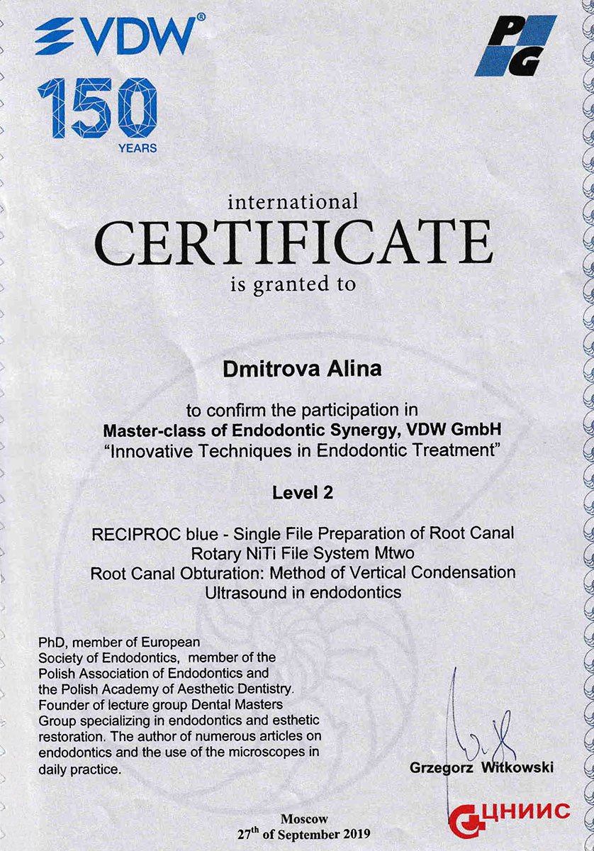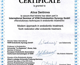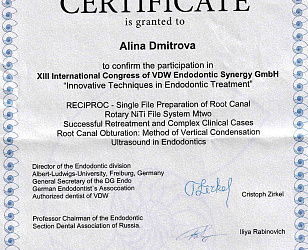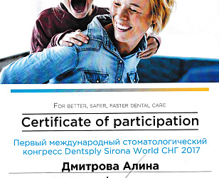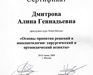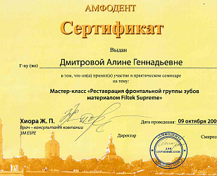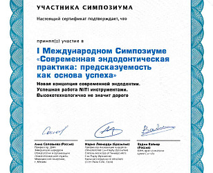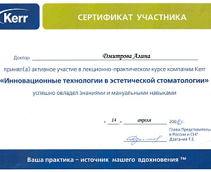 - 2008 г. - «Инновационные технологии в эстетической стоматологии», Kerr, г. Москва.