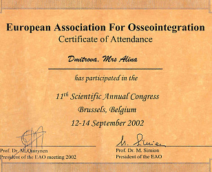 - 2002 г. - European Congress of Association for Osseointegration, г. Брюссель.