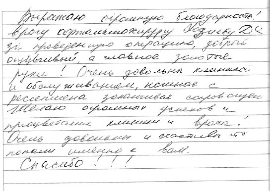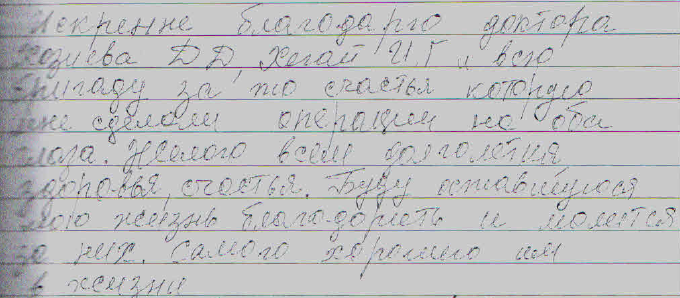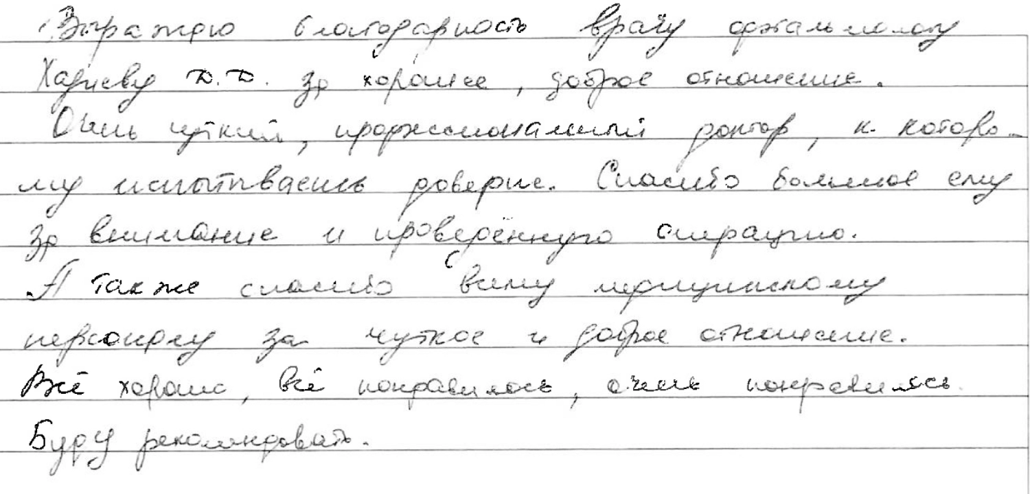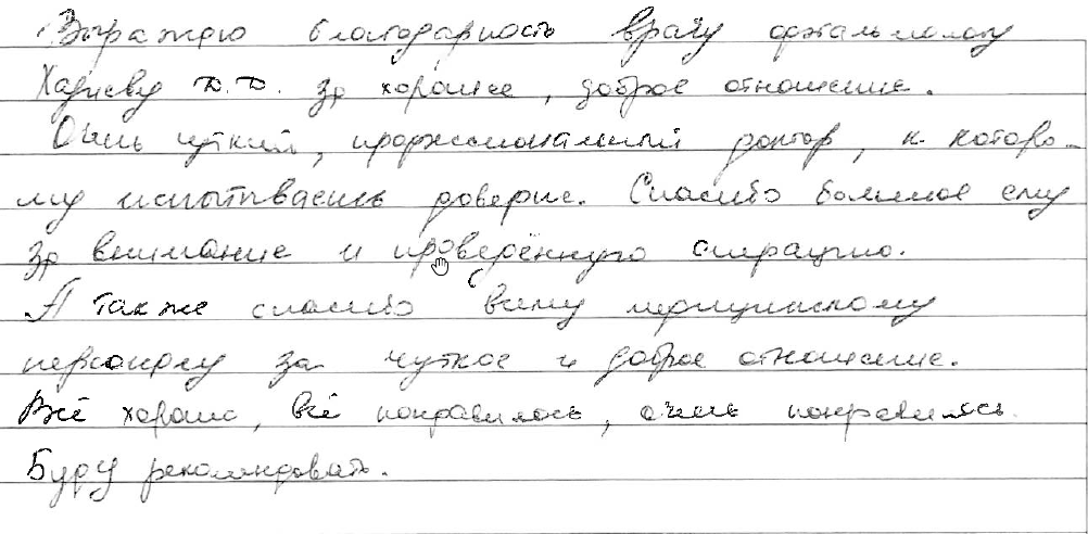 Выражаю благодарность доктору Хозиеву и всему медперсоналу. Всего самого наилучшего, спасибо вам от…