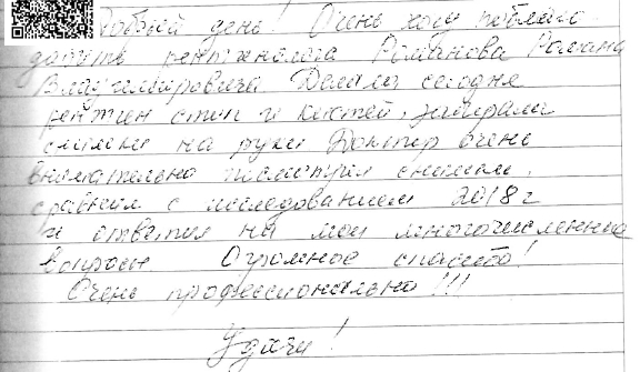 Хочется выразить благодарность доктору Романову Р. В. за внимательное отношение, квалифицированный комментарий снимков и полезные рекомендации.