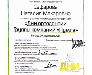 Ежегодно принимает участие в стоматологических конгрессах и выставках, проходит обучающие курсы ведущих ортодонтов России и иностранных коллег