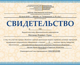 Врачебную практику начал в 2012 г.