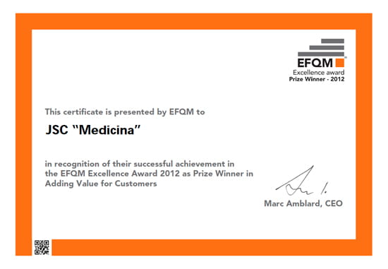 Клиника «Медицина» стала призером Европейского фонда управления качеством в конкурсе EFQM Awards 2012 года. «Медицина» стала лучшей частной клиникой Москвы – лауреатом премии Московского фестиваля в области здравоохранения «Формула жизни», организованного при поддержке Правительства Москвы и Департамента здравоохранения Москвы, в номинации «Негосударственная медицинская организация». Является призером европейского конкурса по качеству EFQM Awards 2012.