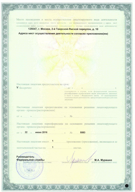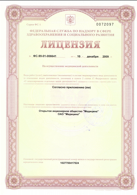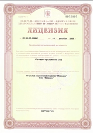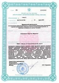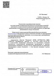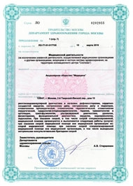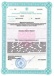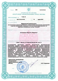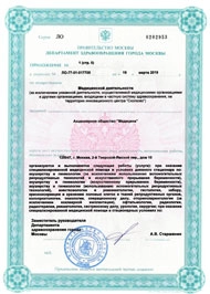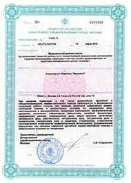 Лицензия на осуществление медицинской деятельности № Л041-00110-77/00363409 Срок действия: бессрочная