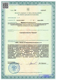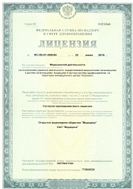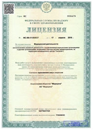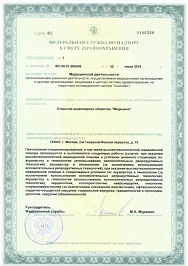 Сертификация Росздравнадзора гарантирует, что качество и безопасность медицинской деятельности в АО «Медицина» (клиника академика Ройтберга) находятся на высочайшем уровне.