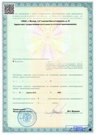 Клиника является первым частным медицинским учреждением России и единственным в Москве и области, успешно прошедшим процедуру сертификации Росздравнадзора (Сертификат №0147/01КБМД от 23.12.2022 г.)