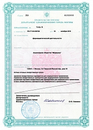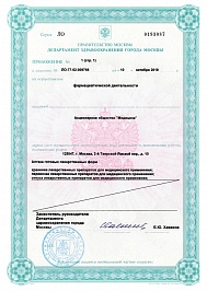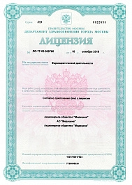 Лицензия № ЛО-77-02-009766 от 10.10.2018 г. на фармацевтическую деятельность