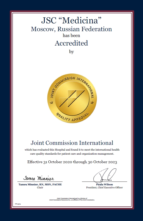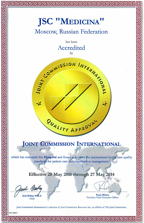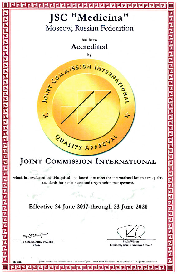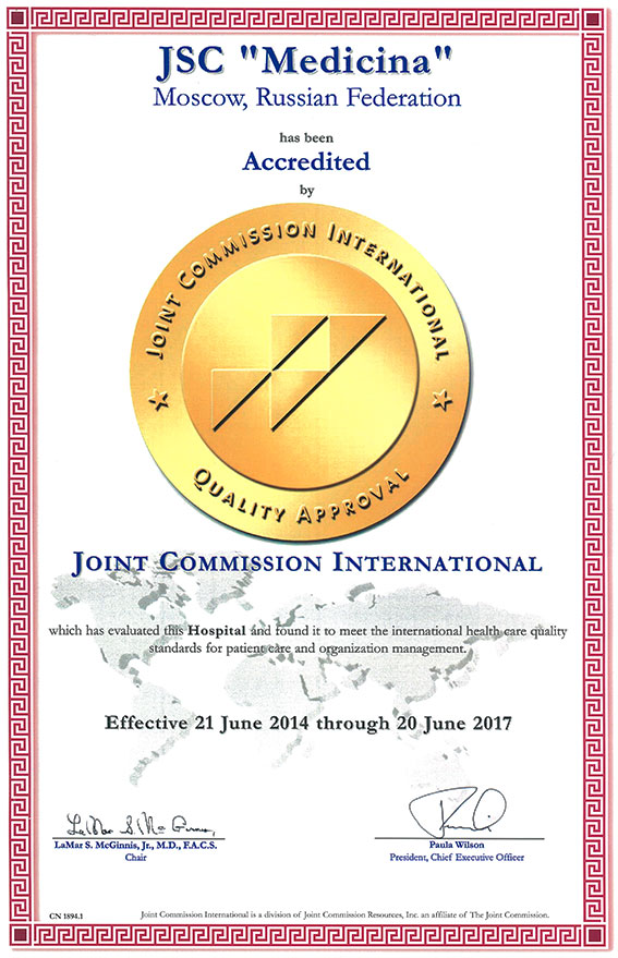 Joint Commission International – наиболее объективная и престижная международная сертификация в области здравоохранения, которая считается «золотым стандартом» качества в сфере оказания медицинских услуг. Стандарты качества и безопасности, разработанные международными экспертами специально для медицинских организаций, едины ко всем процессам в медучреждении и признаны Международным обществом по качеству в здравоохранении (ISQua) и Всемирной организацией здравоохранения.