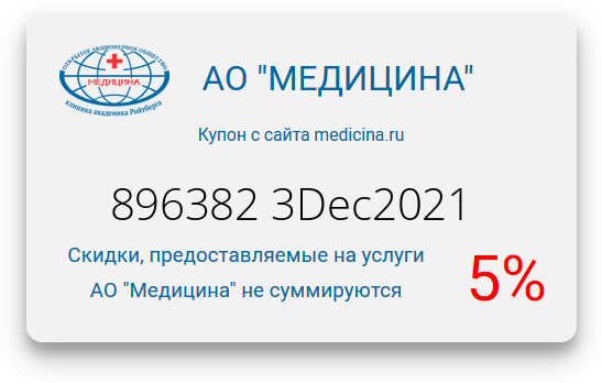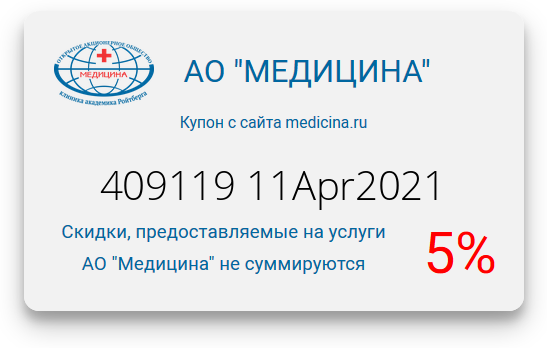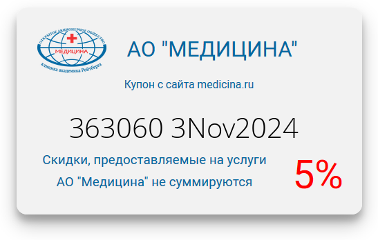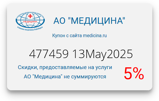 Разовая скидка в АО "Медицина" (клиника академика Ройтберга) |