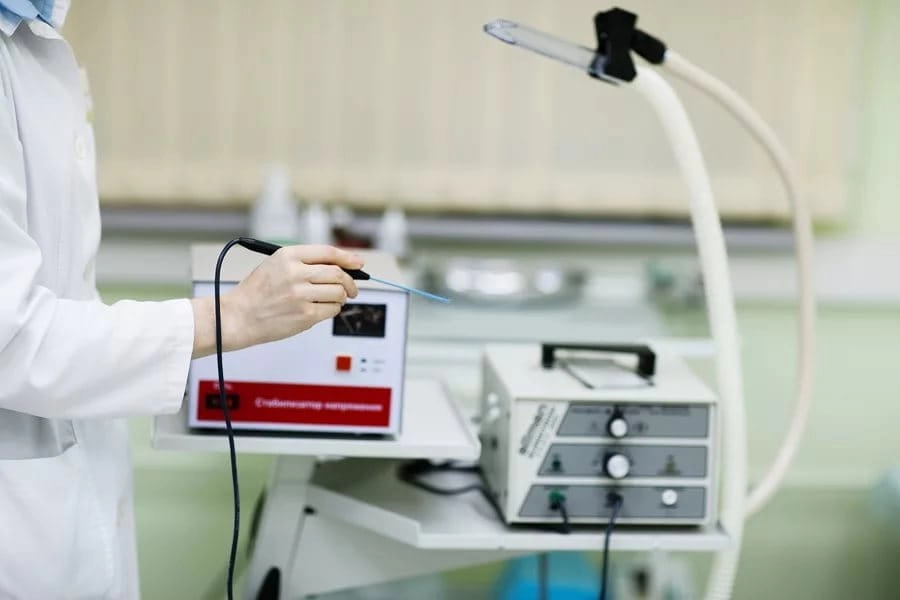 - затем начинается прижигание патологических мест при помощи специального аппарата. На сами очаги воздействуют игольчатые или более толстые электроды.