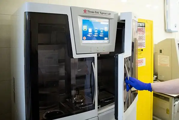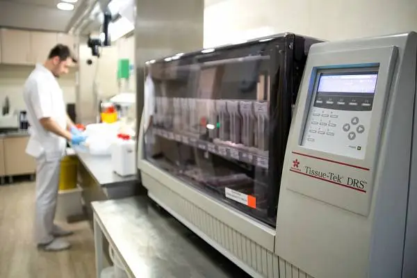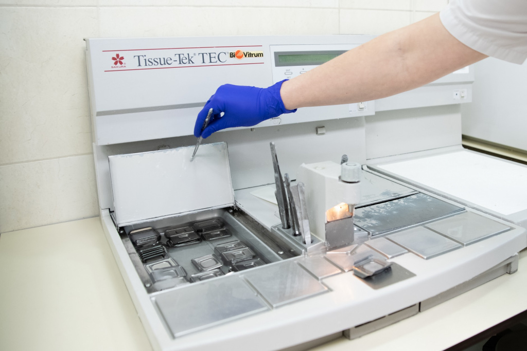 В нашей клинике исследование образцов занимает 48 часов*, так как все подготовительные процедуры выполняются автоматически при помощи современной линии оборудования швейцарской компании РОШ Ventana. -