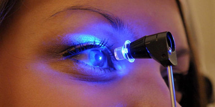 Наличие подобных симптомов диагностируется в ходе осмотра. Обследование проходит с использованием щелевой лампы. Помимо этого, при наличии кератоконуса врач применяет ретиноскоп и кератометр. Инструментальная диагностика характеризуется большой результативностью, она позволяет выявить признаки неправильной формы роговой оболочки глаза.