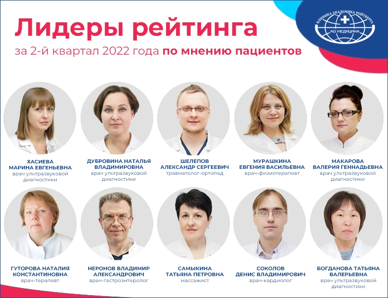 Лучшими специалистами клиники АО «Медицина по результатам голосования пациентов во 2 квартале 2022 года стали: