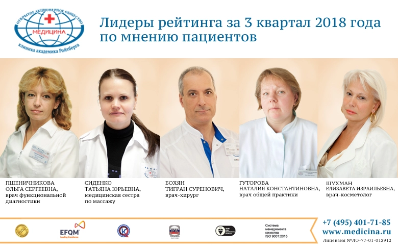 Подошел к концу 3 квартал. А это значит, что снова определены лучшие врачи АО «Медицина» (клиника академика Ройтберга), получившие наибольшее количество положительных отзывов от пациентов!
