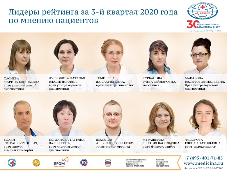 Лучшими врачами по итогам рейтинга в 3-м квартале 2020 года стали: