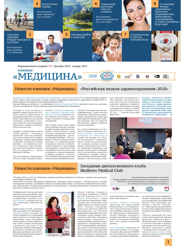 В новом номере корпоративной газеты «Клиника «Медицина» вы найдете информацию о мероприятиях, проводимых нашей клиникой; об инновационных методиках, предлагаемых нашим пациентам для лечения различных заболеваний; а также полезные и интересные медицинские советы.