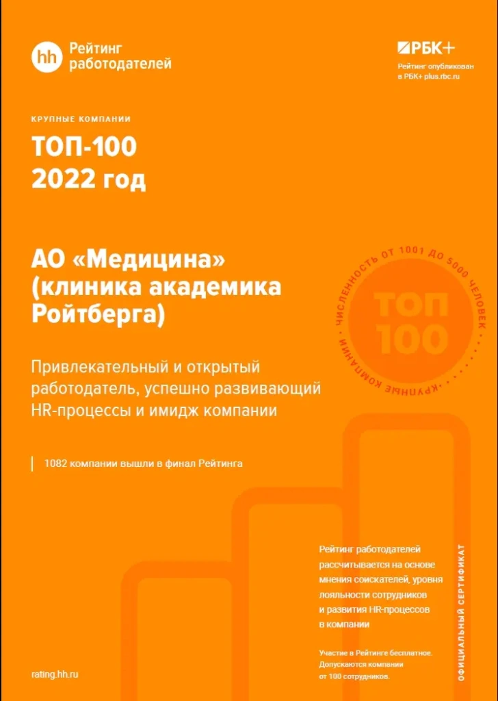 АО «Медицина» (клиника академика Ройтберга) – вошло в ТОП-100 лучших работодателей России в 2023 году