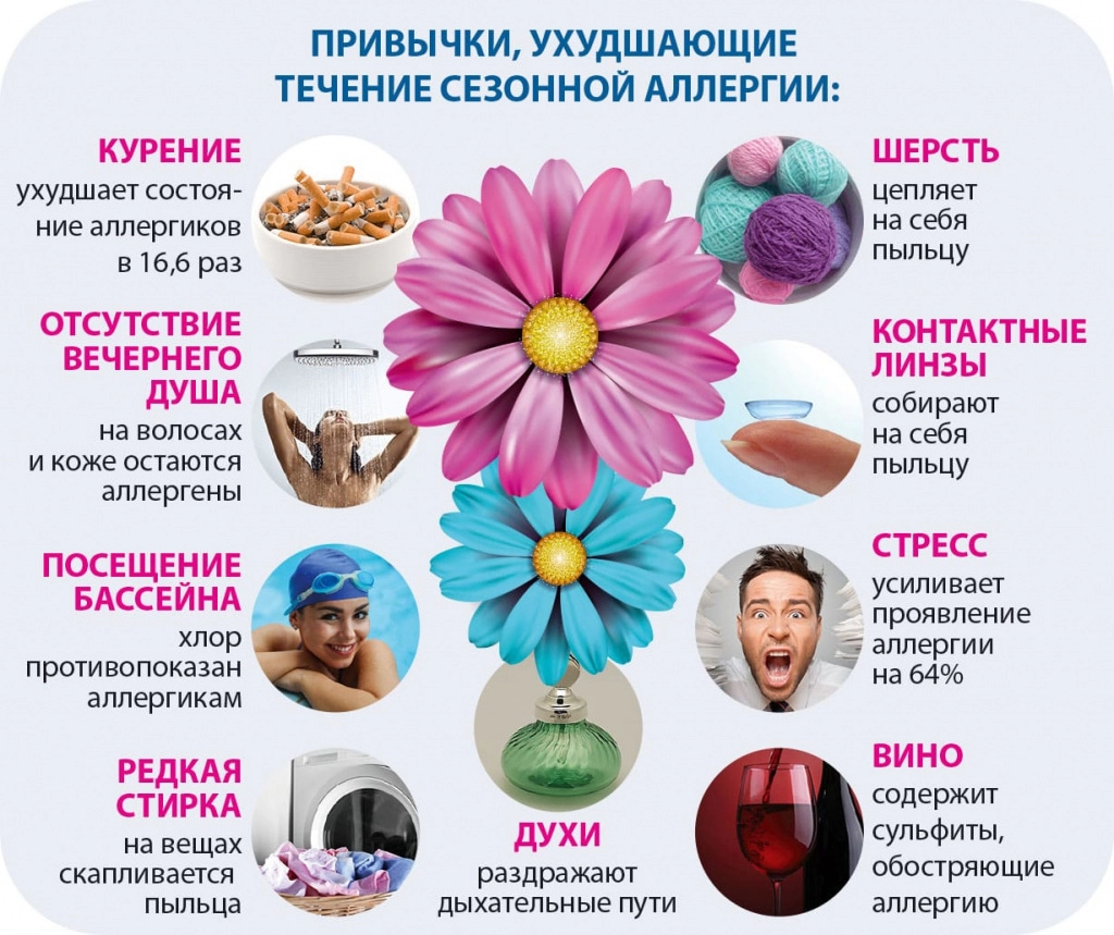 Цветочная пыльца и/или домашняя пыль, на которые некоторые реагируют чиханием, кашлем и кожными высыпаниями, на самом деле не опасны. Но иммунная система аллергиков эти и другие раздражители ошибочно принимает за вредные микроорганизмы и атакует, отвечая развитием воспаления. Это называется поллиноз – сезонное аллергическое заболевание, которое вызывает пыльца растений.